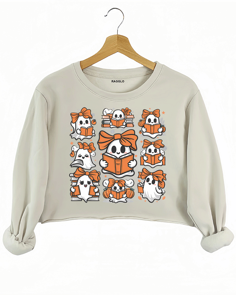 Style: Ghost Reading Teacher Halloween Crop Sweatshirt