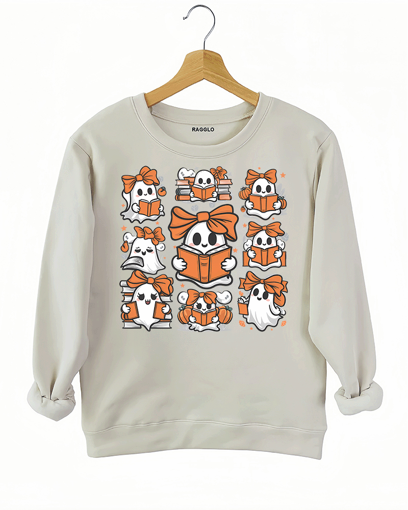 Style: Ghost Reading Teacher Halloween Sweatshirt