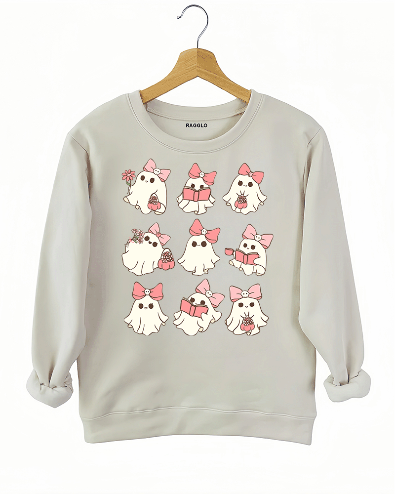 Style: Pink Ghost Reading Groovy Halloween Sweatshirt