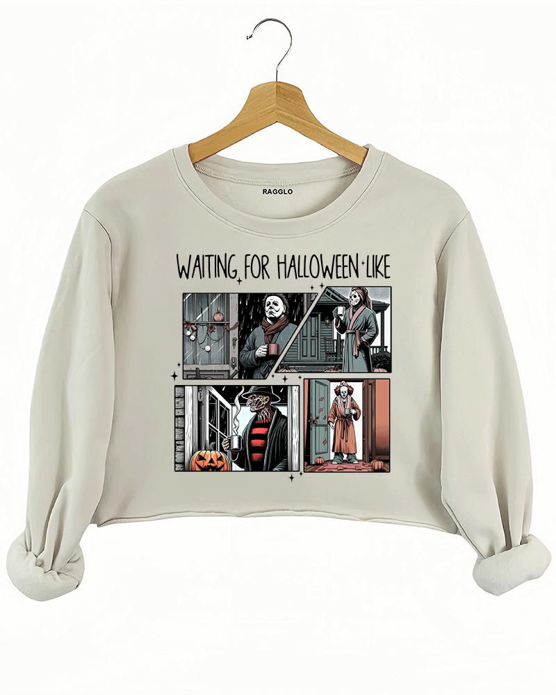 Waiting For Halloween Like Horror Movie Characters Crop Sweatshirt